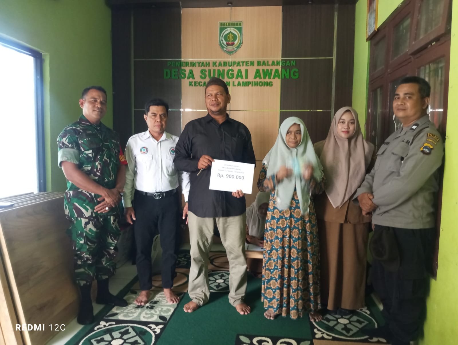 Hadir dalam kegiatan tersebut Kepala Desa Sungai Awang, Babinsa, Bhabinkamtibmas, pendamping desa, perangkat desa, perwakilan dari Kecamatan Lampihong, serta masyarakat penerima bantuan.