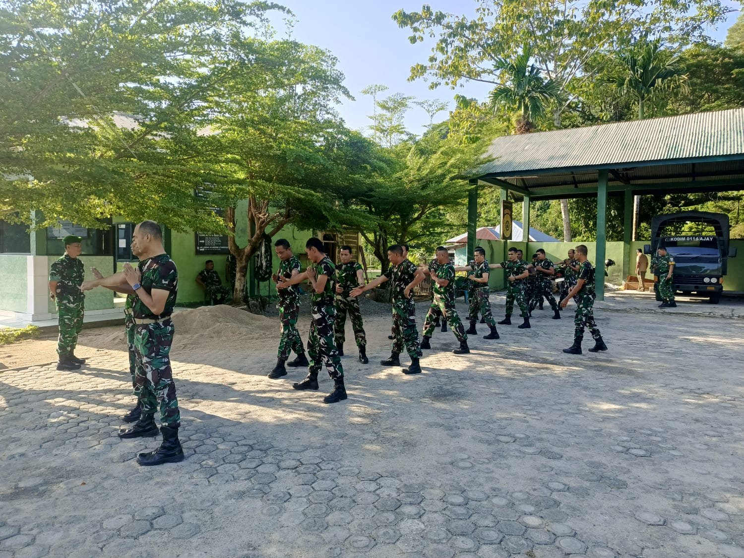 Kegiatan latihan yang dilaksanakan di lingkungan Makodim tersebut diikuti oleh para prajurit dengan penuh semangat dan disiplin. Dalam latihan ini, para personel mempraktikkan berbagai teknik dasar bela diri militer yang meliputi gerakan pertahanan diri, teknik mengunci, menjatuhkan lawan, hingga teknik melumpuhkan lawan dalam situasi pertempuran jarak dekat.