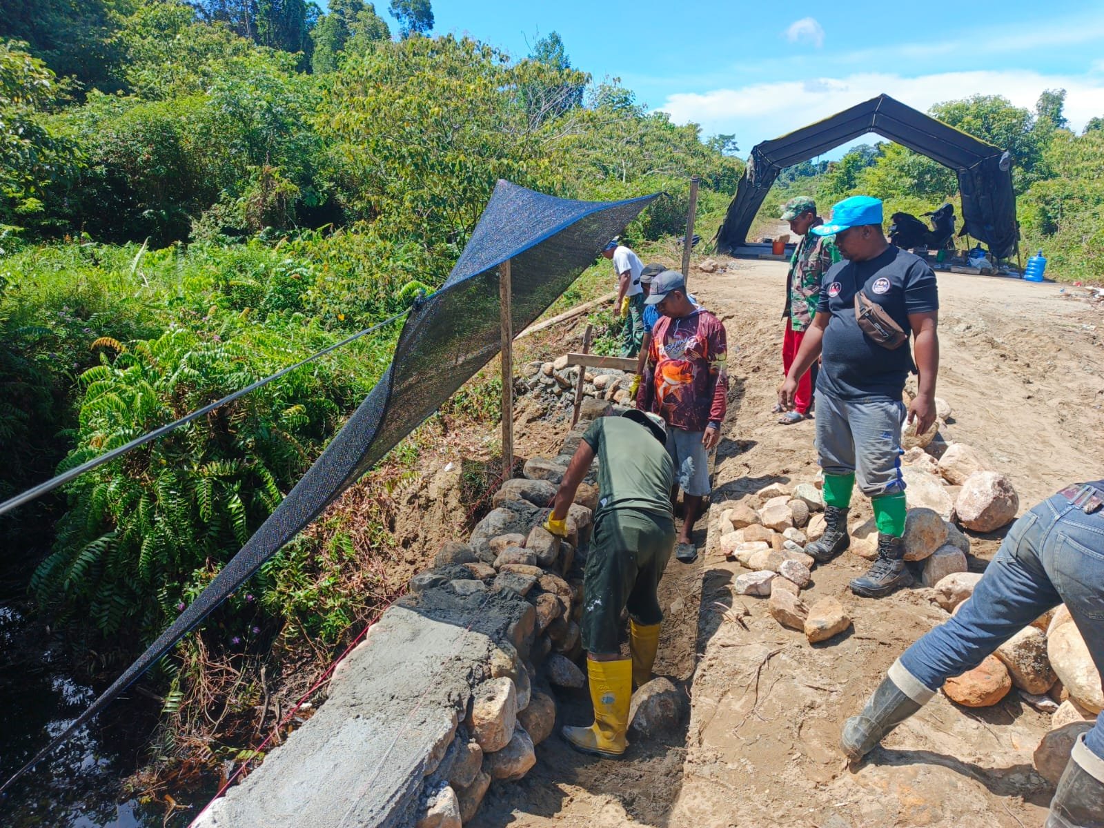 Saat ini, progres pekerjaan difokuskan pada pengecoran lanjutan pondasi di sisi kanan dan kiri jembatan. Di lapangan, personel TNI dan warga tampak kompak bahu-membahu menyelesaikan setiap tahapan pekerjaan secara gotong royong.