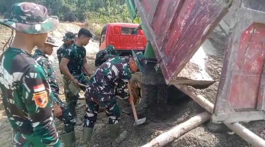 “Karena tanah di lokasi ini masih labil, terutama setelah hujan, truk pengangkut material bisa mudah amblas,” ujar salah satu anggota Satgas TMMD di lokasi.