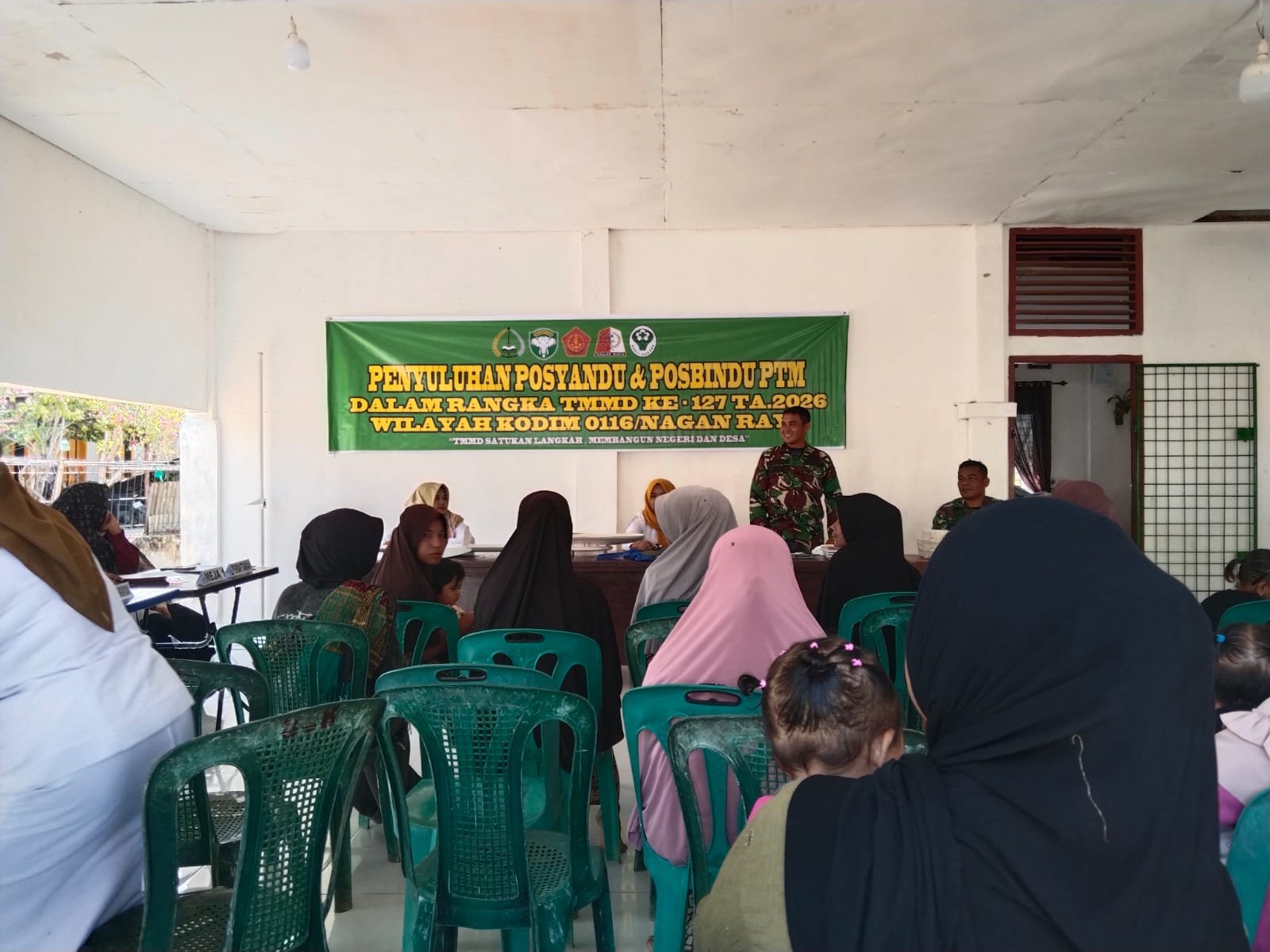 Melalui penyuluhan Posyandu dan Posbindu, Satgas TMMD berkolaborasi bersama Bidan Desa Laila guna meningkatkan pemahaman kesehatan warga. Kegiatan ini menjadi bukti bahwa pembangunan desa membutuhkan kerja bersama, layaknya roda yang bergerak karena saling menguatkan.
