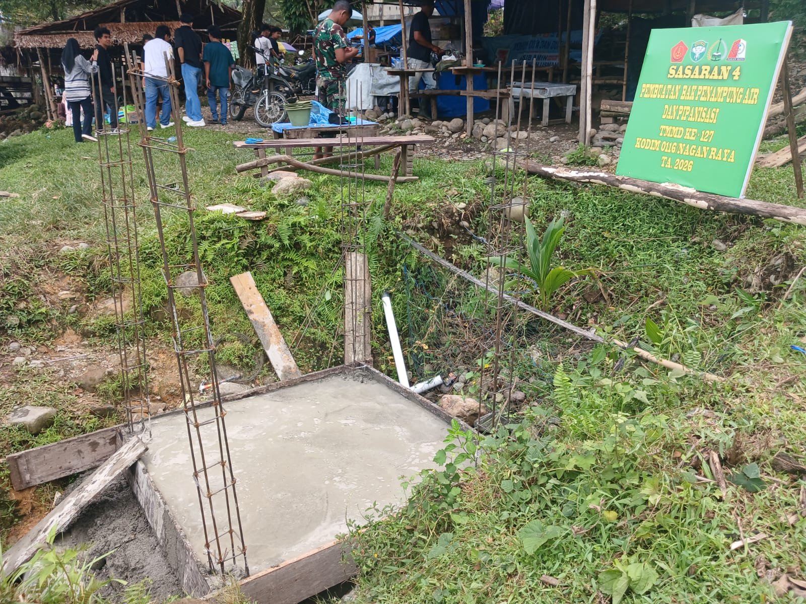 NAGAN RAYA – Pembuatan bak penampungan air bersih pada kegiatan TNI Manunggal Membangun Desa (TMMD) Ke-127 Kodim 0116/Nagan Raya di wilayah Nagan Raya terus menunjukkan progres signifikan dengan dimulainya tahap pengecoran lantai dasar.