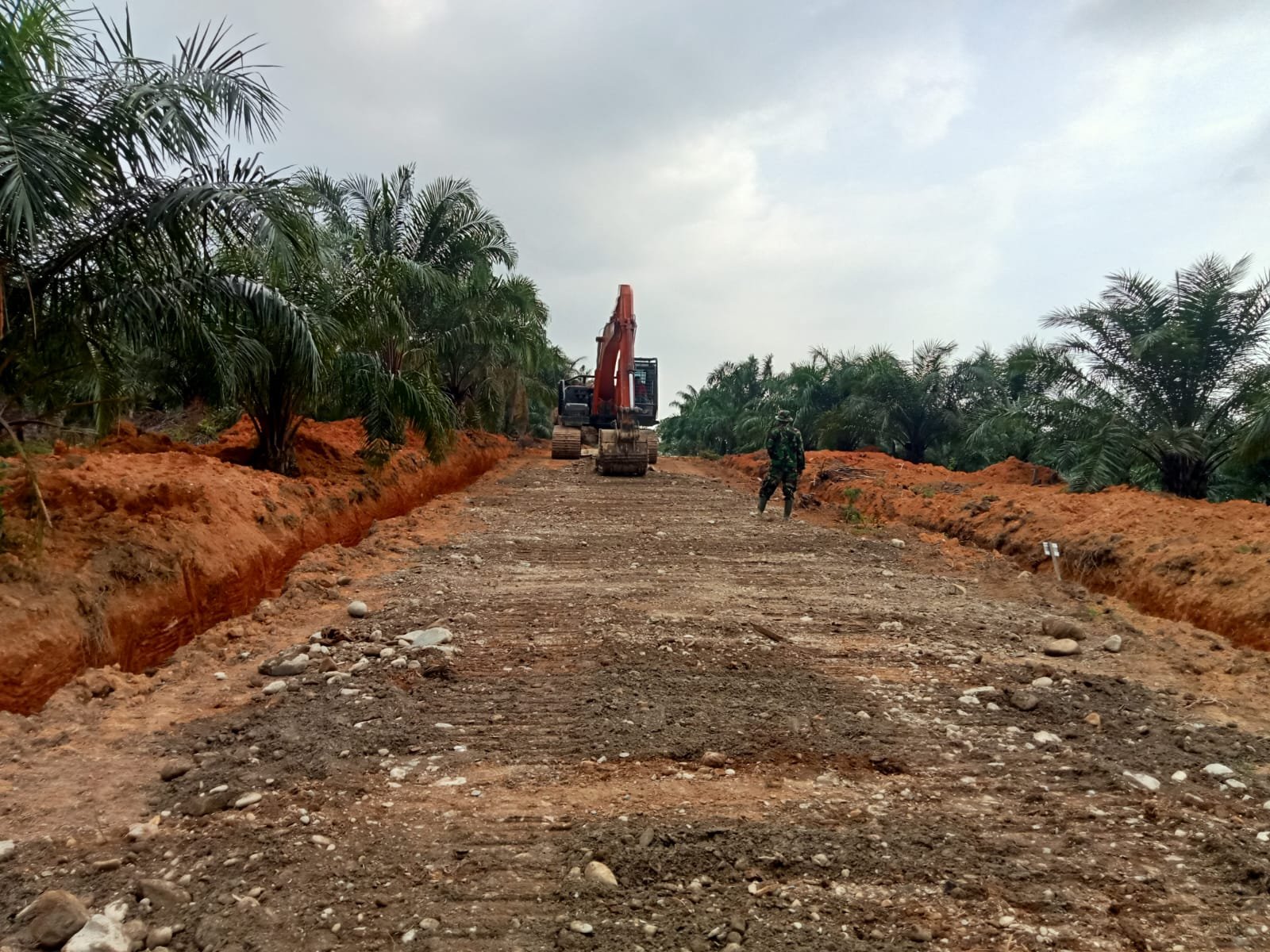 Berdasarkan pantauan di lapangan, Senin (9/3/2026), alat berat excavator bekerja meratakan timbunan tanah sebagai dasar badan jalan. Pada beberapa titik, anggota Satgas TMMD bersama masyarakat melanjutkan pekerjaan secara manual menggunakan cangkul dan sekop.