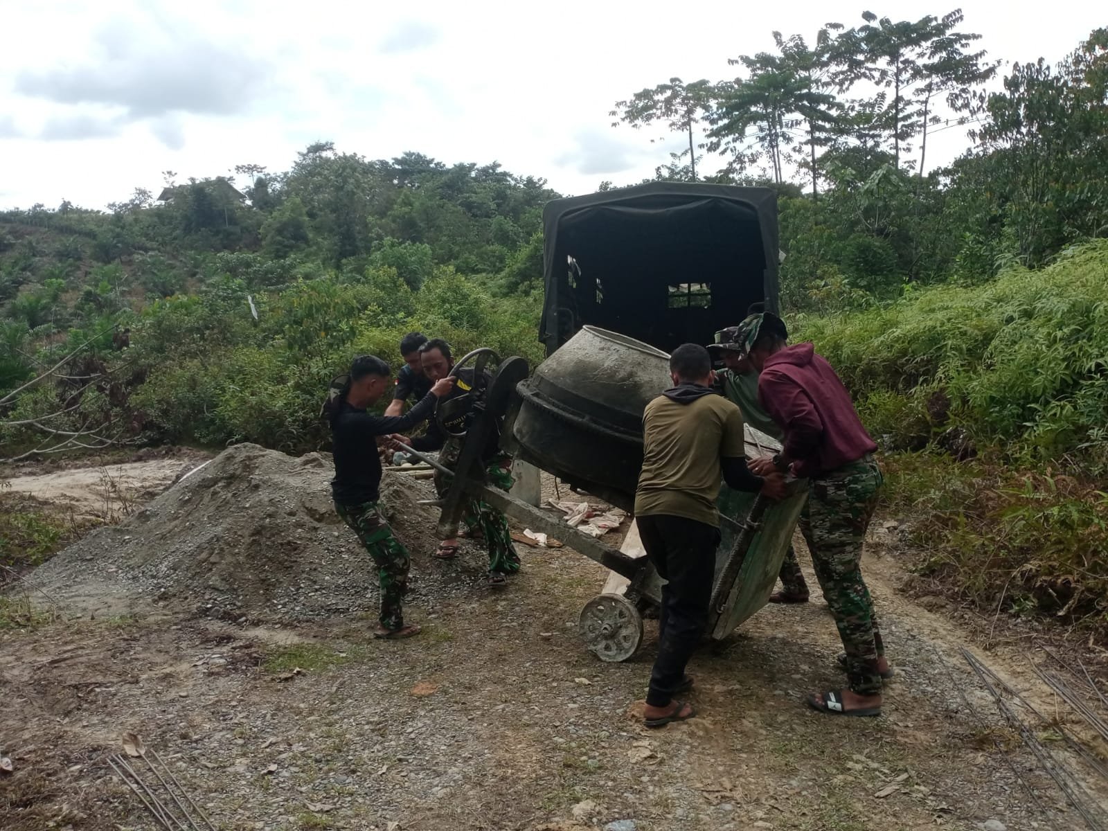 Peralatan tersebut dimanfaatkan untuk pengadukan material beton pada pekerjaan box culvert yang menjadi bagian dari pembangunan badan jalan di Desa Ujong Blang. Pelda Burhan menjelaskan bahwa keberadaan box culvert sangat diperlukan sebagai saluran pembuangan air agar tidak terjadi genangan yang dapat merusak konstruksi jalan, Sabtu (21/2/2026).