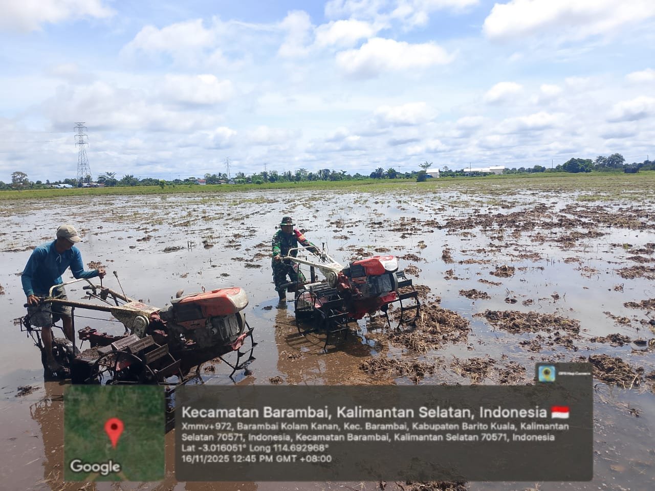 Rantau Badauh, Barito Kuala – Sertu I Ketut Bhakti, seorang Bintara Pembina Desa (Babinsa) dari Koramil 1005-03/Rantau Badauh, aktif melaksanakan kegiatan pendampingan Luas Tambah Tanam (LTT) dengan membantu petani menanam padi di wilayah binaannya. Kegiatan ini dilaksanakan di Kecamatan Rantau Badauh, Kabupaten Barito Kuala. Pada Minggu 16 November 2025.
