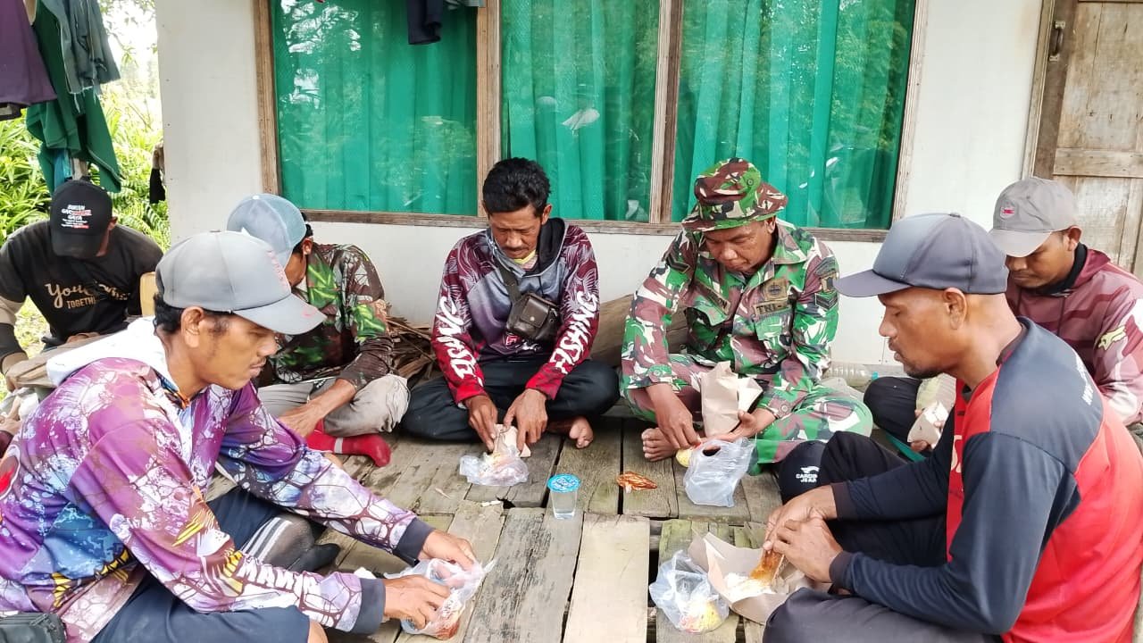 BARITO KUALA – Ada pemandangan menarik di sela pelaksanaan TMMD Ke-126 Kodim 1005/Barito Kuala di Desa Tumih, Kecamatan Wanaraya. Di tengah rindangnya pepohonan, anggota TNI bersama warga tampak menikmati makan siang sederhana. Mereka duduk melingkar di teras rumah, menikmati nasi bungkus dengan penuh keakraban.