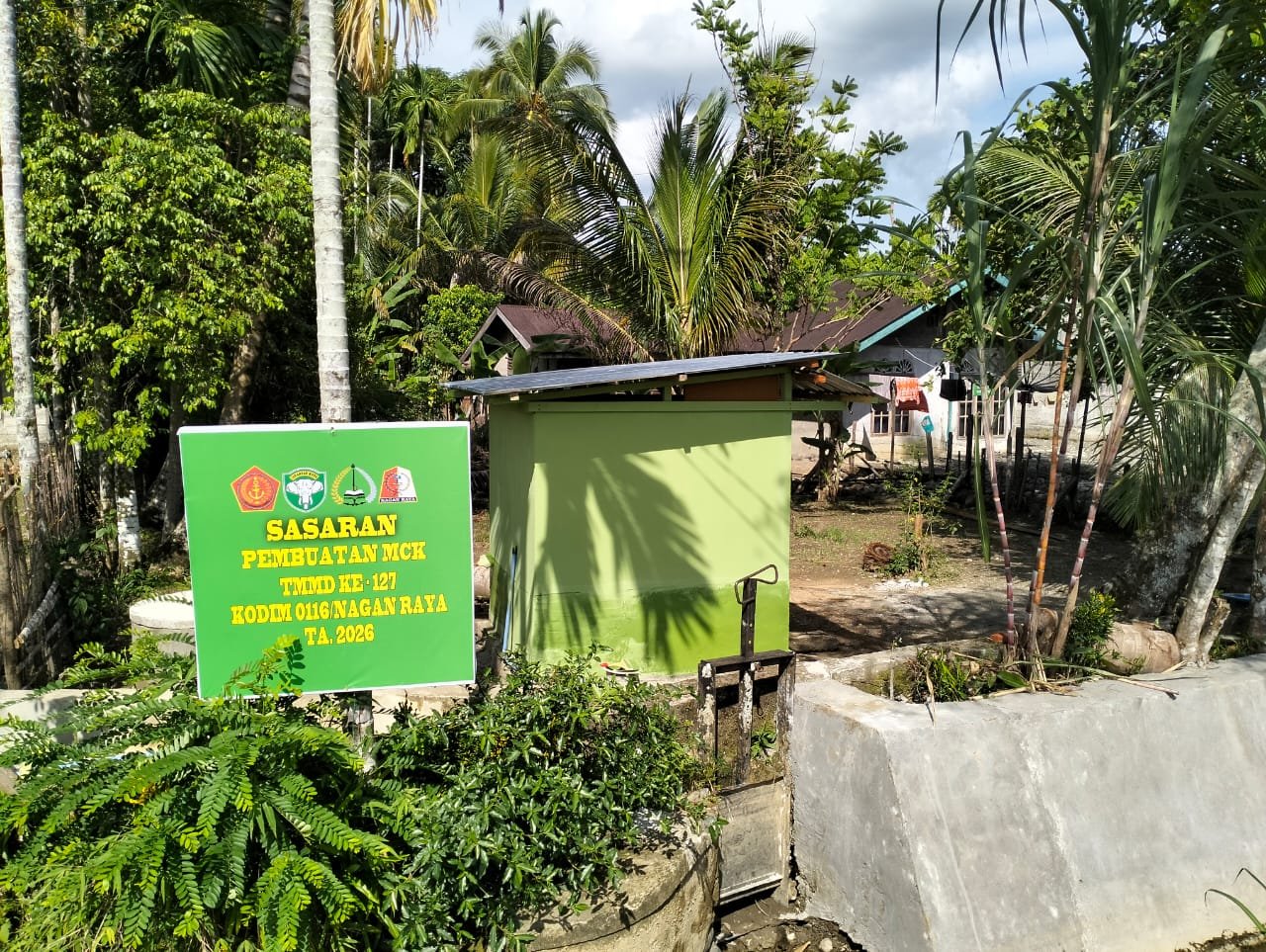 Proses ini menjadi bagian penting sebelum fasilitas tersebut resmi dimanfaatkan masyarakat. Dengan dominasi warna hijau, bangunan MCK tampil bersih dan representatif. Warna tersebut sekaligus mencerminkan identitas dan semangat pengabdian prajurit TNI.
