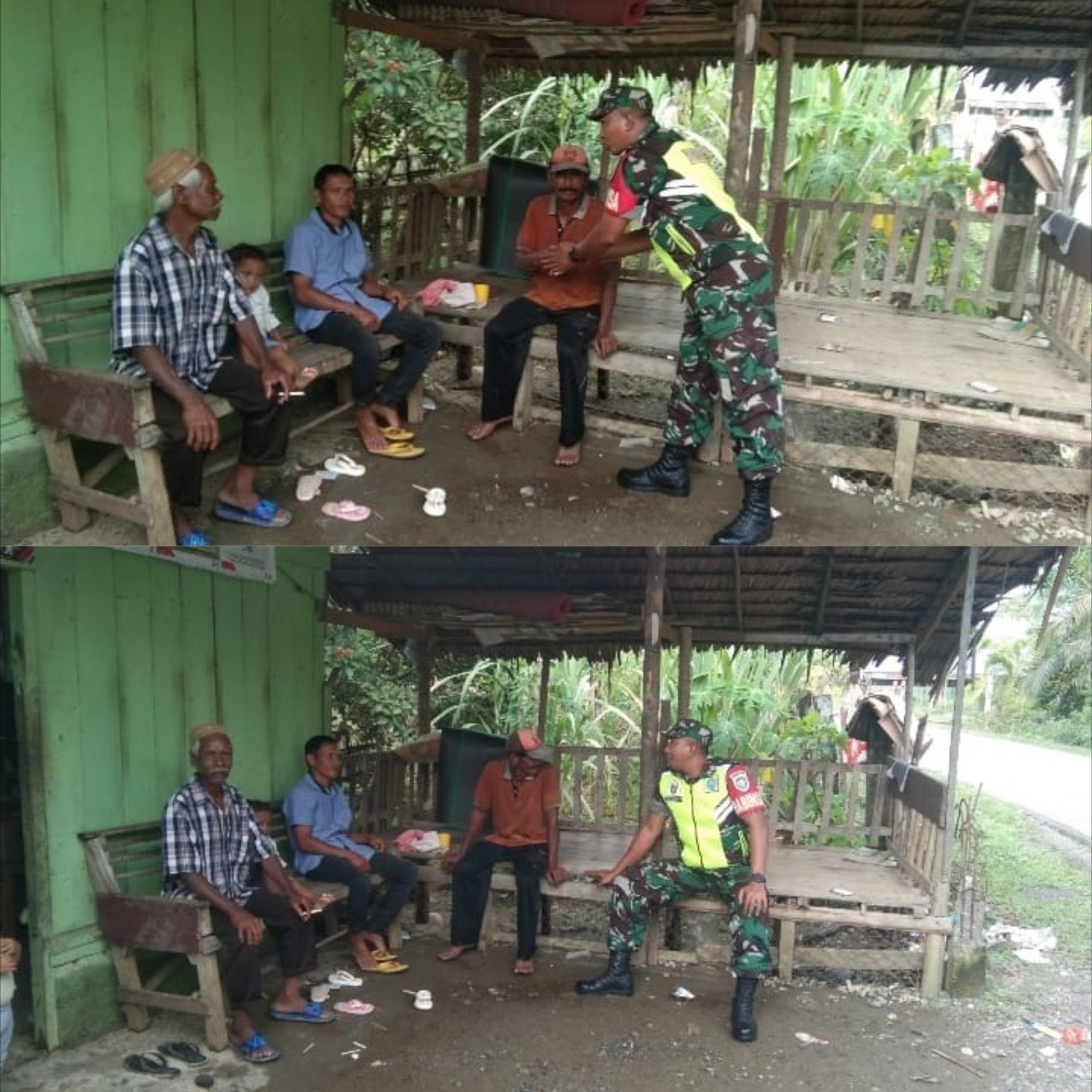 Kegiatan Komsos ini bertujuan untuk menjalin silaturahmi, meningkatkan kemanunggalan TNI dengan rakyat, serta mengetahui secara langsung kondisi dan permasalahan yang ada di tengah masyarakat. Dalam kesempatan tersebut, Serda Ilham berdialog dengan warga mengenai situasi keamanan, kebersihan lingkungan, serta pentingnya menjaga kerukunan antarwarga.