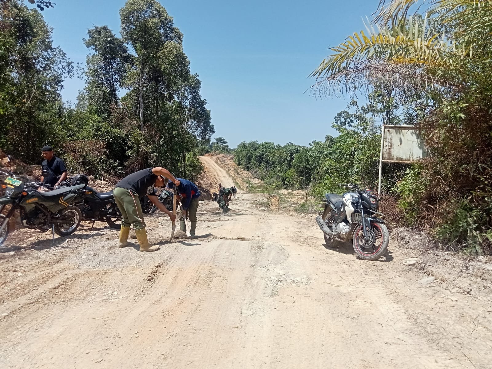Meski sedang menjalankan ibadah puasa Ramadhan, semangat para personel Satgas dan warga tidak terlihat surut. Matahari yang terik seakan menjadi saksi bagaimana kerja keras terus mengalir sepanjang jalur pembangunan.