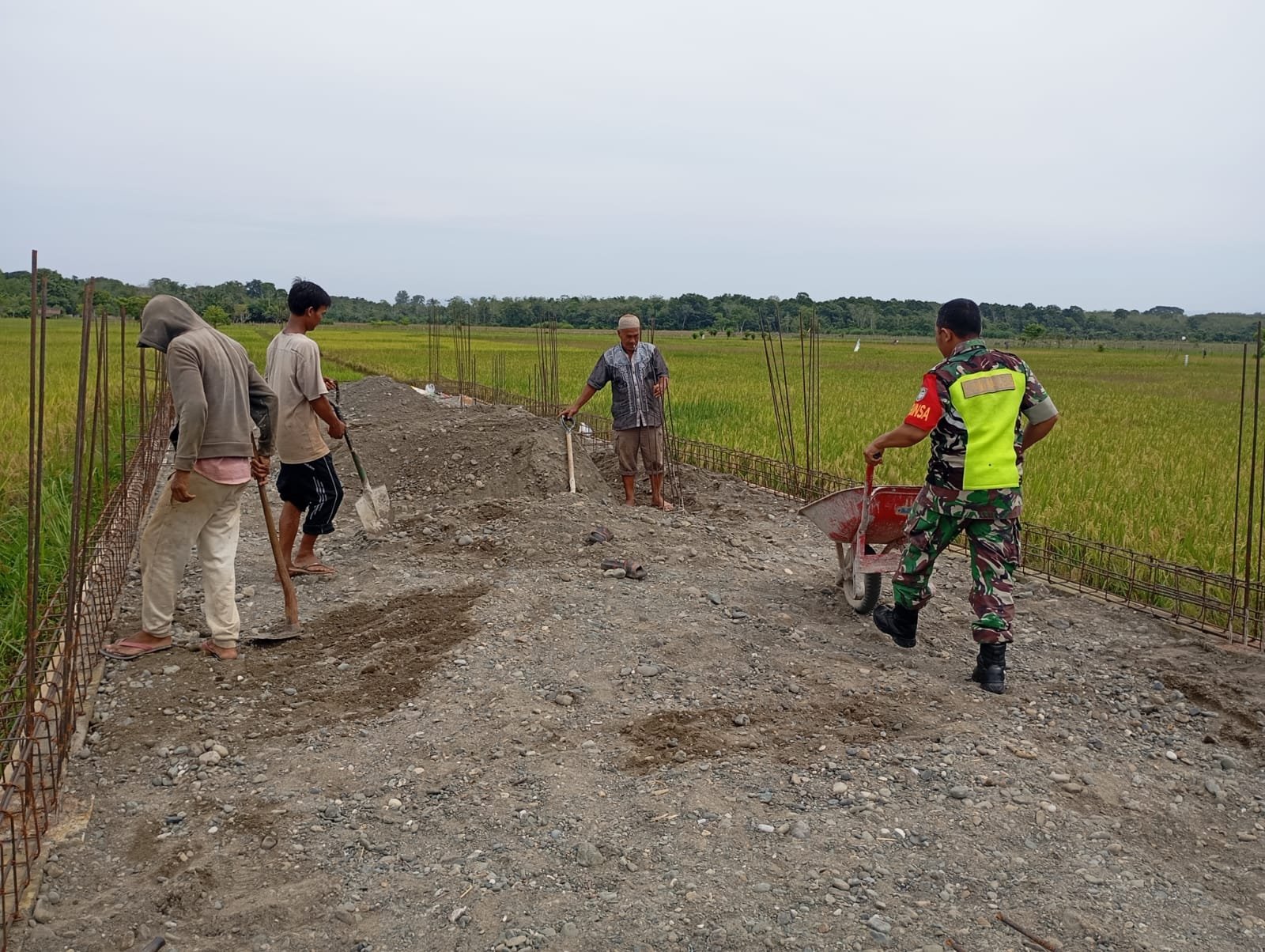 ACEH BARAT – Sebagai wujud kepedulian di wilayah binaannya, Babinsa Posramil 06/Bubon Kodim 0105/Aceh Barat, Sertu Endi Suhendi, bersama warga bergotong royong menimbun pondasi untuk membangun salah satu rumah masyarakat di Desa Liceh, Kecamatan Bubon, Kabupaten Aceh Barat, Rabu (10/09/2025).