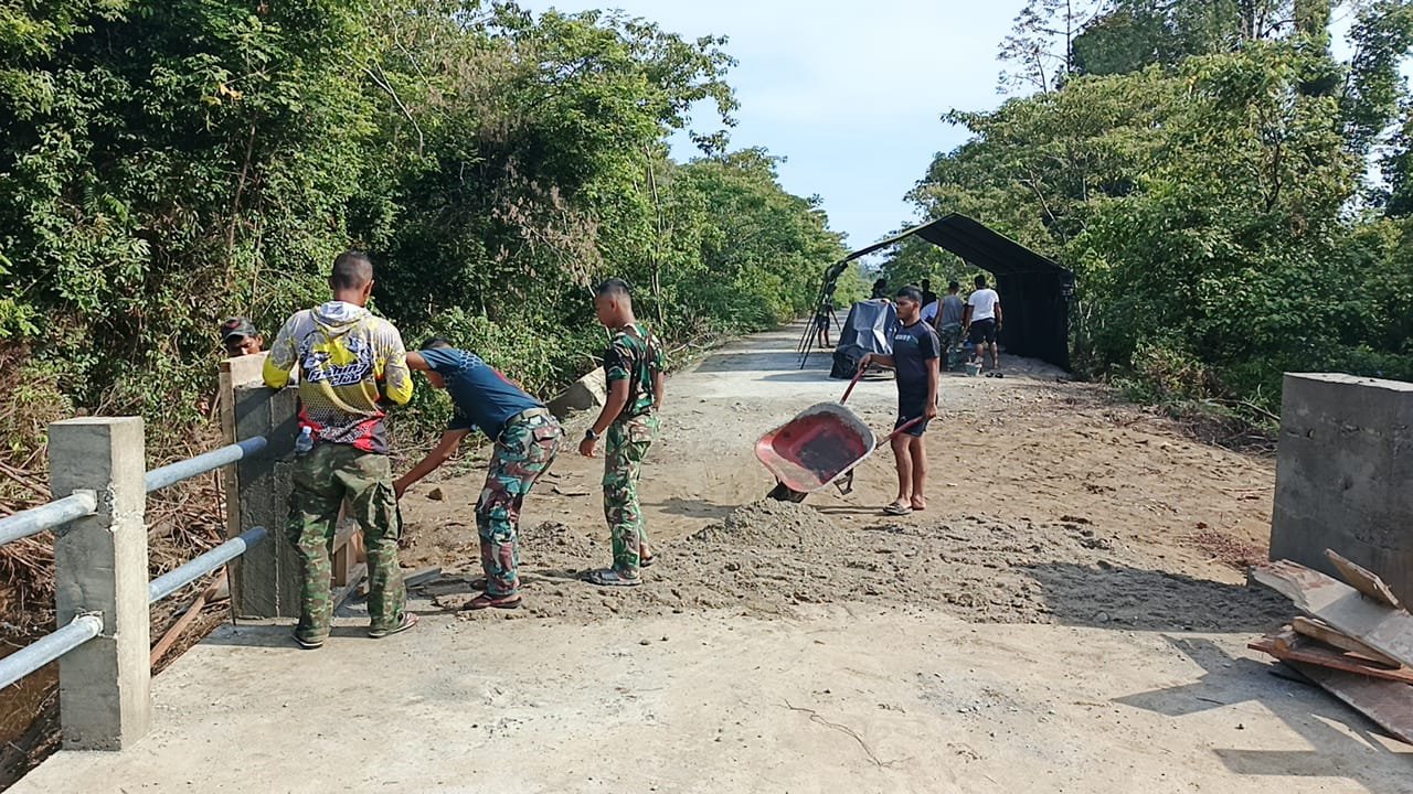 Ws. Pasiops Kodim 0107/Aceh Selatan Kapten Inf Faisal Kurniawan menjelaskan bahwa tahap finishing menjadi penentu kualitas akhir sebelum jembatan difungsikan.