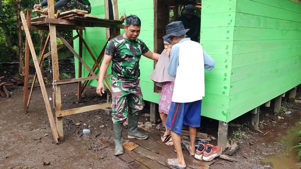 Dalam kegiatan tersebut, anggota Satgas TMMD turut mendampingi Kai Zaini dan istrinya meninjau langsung perkembangan rumah yang kini tampak lebih kokoh dan nyaman. Dukungan masyarakat sekitar juga terlihat nyata dengan ikut membantu proses pengerjaan.