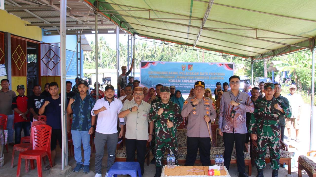 BOALEMO – Momentum bersejarah bagi konektivitas antarwilayah di Kabupaten Boalemo resmi dimulai. Komandan Kodim (Dandim) 1316/Boalemo, Letkol Czi Yuda Herizal, S.H., bersama Kapolres Boalemo, AKBP Sigit Rahayudi, S.I.K., serta unsur Forkopimda melaksanakan ground breaking peletakan batu pertama pembangunan Jembatan Perintis Garuda dan jembatan beton, Jumat (27/03/2026), di Desa Modelomo, Kecamatan Tilamuta, Kabupaten Boalemo.