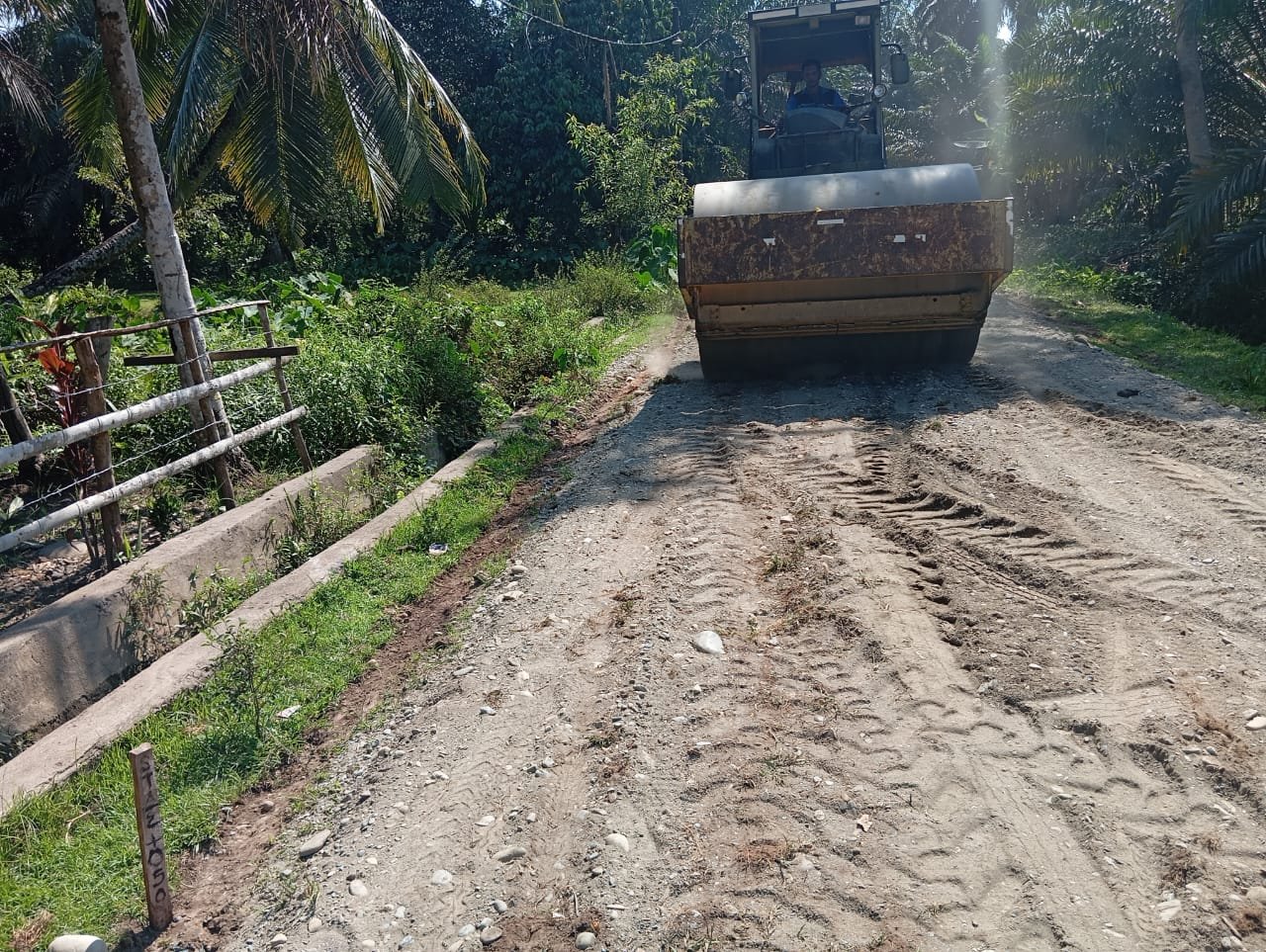 Pada Senin (9/3/2026) pekerjaan terus dipacu agar seluruh bagian jalan dapat dipadatkan secara merata. Tahapan ini sangat menentukan kekuatan jalan agar tidak mudah rusak ketika dilalui kendaraan.