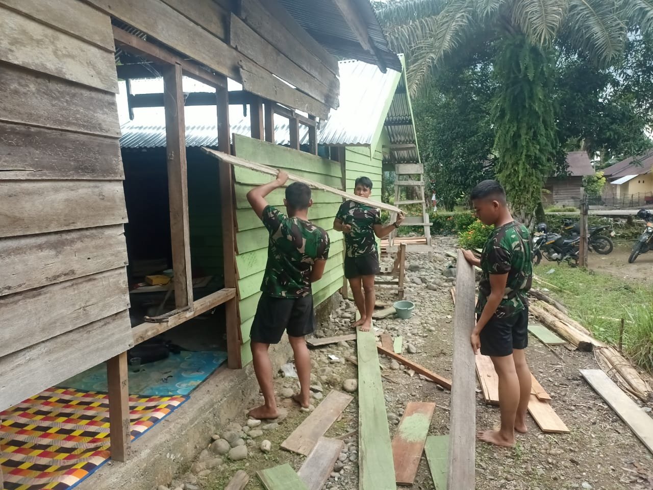 Perehaban Rumah Tidak Layak Huni (RTLH) dilakukan dengan cara yang penuh kebersamaan. Para personel tidak bekerja sendiri-sendiri, melainkan saling membantu dalam satu irama pekerjaan.