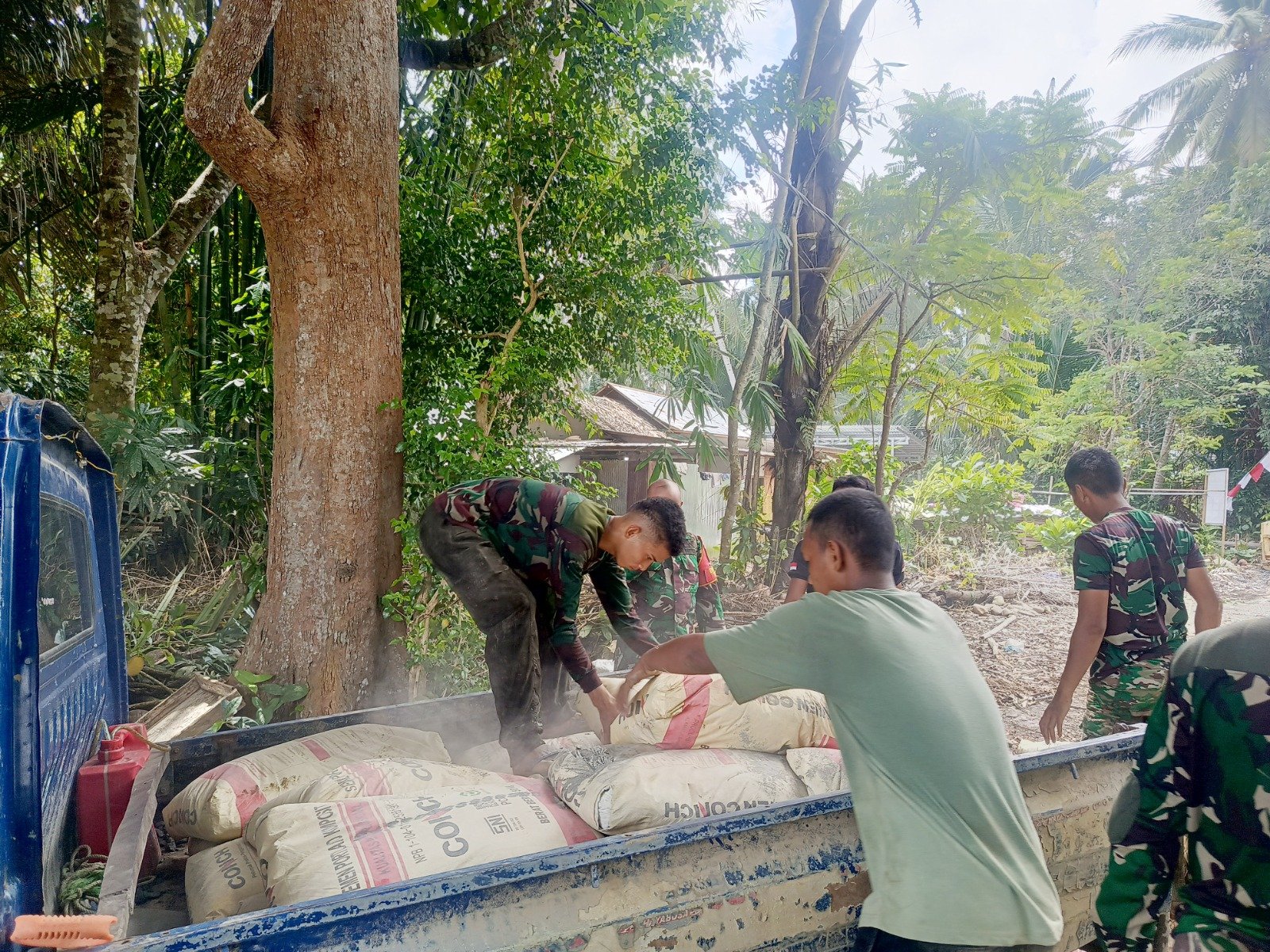 “Personel bersama masyarakat harus mengangkut kembali material menggunakan mobil kecil jenis pick up agar sampai ke titik pengecoran,” ujar Letda Dian, Rabu (29/4/26).