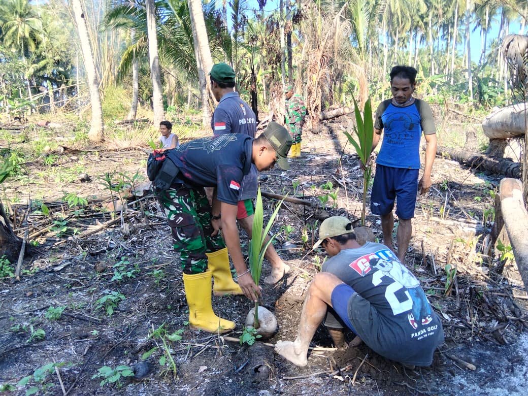 HALMAHERA SELATAN – Dalam upaya mendukung penghijauan dan ketahanan pangan, Satgas TNI Manunggal Membangun Desa (TMMD) ke-128 Kodim 1509/Labuha menggelar penanaman pohon produktif seperti pohon kelapa dan pala di Desa Lalubi, Kecamatan Gane Timur, Kabupaten Halmahera Selatan, Rabu (29/04/2026).