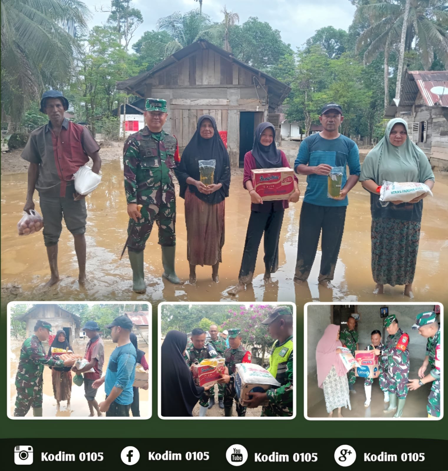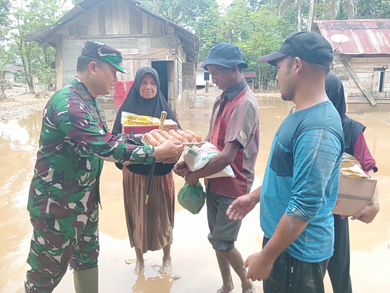 “Kami (TNI) senantiasa akan selalu hadir di tengah-tengah masyarakat serta berkomitmen untuk membantu mengatasi kesulitan-kesulitan masyarakat secara aktif, kreatif, masif, dan selalu melahirkan solusi-solusi nyata yang bisa meredakan kepanikan warga. Bantuan ini murni sebagai sikap realisasi rasa kemanusiaan dan kepedulian kami agar warga yang terdampak banjir bisa mencukupi kebutuhan pangannya,” tutup Dandim.(0105).