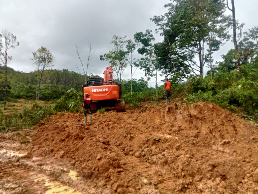 Dansatgas TMMD Letkol Inf Irfan Hade Fitrianto menjelaskan, Kamis (12/2/2026), pembangunan badan jalan sepanjang 3.100 meter dikerjakan menggunakan alat berat guna mempercepat pembukaan akses antar desa.