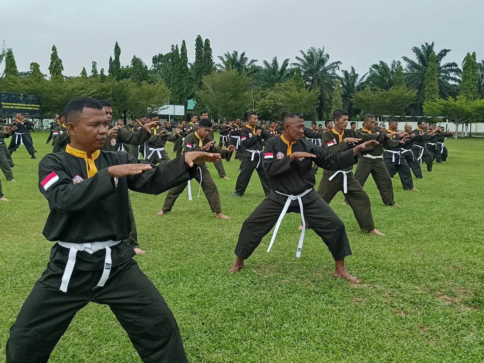 Dandim 0105/Abar, Letkol Inf S. Kembaren, S.E., M.I.P., CFrA., menyampaikan bahwa ujian kenaikan tingkat dari sabuk putih ke kuning ini bukan sekadar menjalankan program dari satuan atas saja, melainkan juga bagian penting dalam membentuk kemampuan dasar bela diri prajurit.